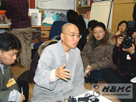 "지율 스님 몸을 보니 진짜 뼈밖에 없더라"고 안타까워한 법륜 스님은 "사람들이 생명의 문제보다 단식 날짜에만 관심이 있는 것 같다"고 아쉬움을 표했다.