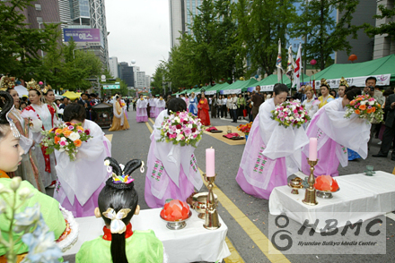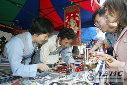 오후 1시20분 중앙공연무대에서 벌어진 색색의 고운 한복을 입은 백운초등학교 어린이들의 춤추는 널뛰기. 어른들의 향수를 자극함과 어린이 청소년들에게는 흥미만점의 흥겨움을 선사했다. 중앙에 설치된 공연무대 1에서는 주로 우리나라의 전래놀이와 공연들이 길가는 관람객들의 시선을 붙들었다. 춤추는 널뛰기에 이어 동국대 국악과에서 준비한 타악공연 역시 우리 전통 가락의 흥겨움으로 어깨춤이 들썩들썩 나올만큼 울려퍼졌다.