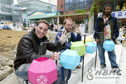 축제 현장을 돌아다니다 보면 만나게 되는 노란 조끼를 입은 어르신들. 서울노인복지센터에서 파견나온 자원봉사 어르신들이다. 외국인 안내 등을 위해 목에 해당 외국어 표시를 달고 이제나 저제나 외국인들에게 연등축제를 소개하고자 축제 현장을 누빈다.